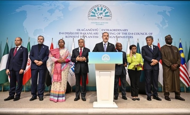 Fidan, Gelişen 8 Ülke (D-8) Ekonomik İşbirliği Teşkilatı olarak tarihi bir rol üstlendiklerini belirterek, "Gazze’deki İsrail zulmü karşısında sessiz kalmadığımızı, sessiz kalamayacağımızı, İstanbul'da hep birlikte tüm dünyaya bir kez daha ilan ediyoruz." dedi. AA