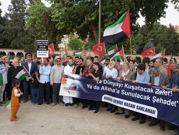Cuma günün Şanlıurfa STK platformu Dergah camisinde namaz sonrası Gazze Şehidimiz Hasan Saklanan’ın öldürülmesi münasebetiyle bir basın açıklaması yaptı. Daha sonra taziye yerine gittik, başka illerden, kurum ve oluşumlardan da katılımcılar vardı, birkaç kişi mikrofon alıp kısa kısa konuşmalar da yaptılar.