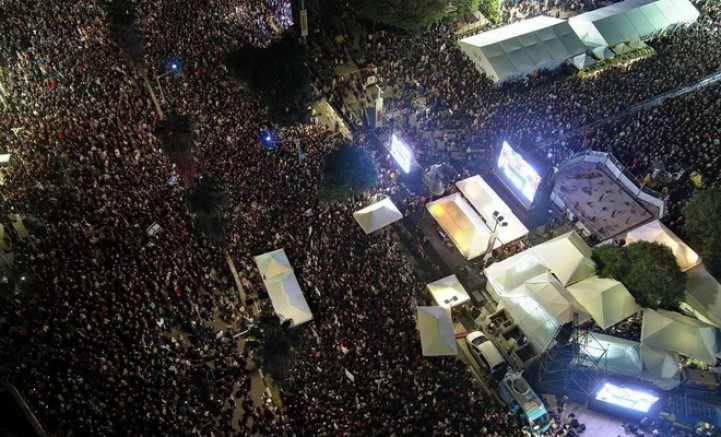 Binlerce Yahudi yerleşimci, Gazze'deki esirlerin serbest bırakılması talebiyle işgal altındaki Tel Aviv'de büyük bir gösteri düzenledi.