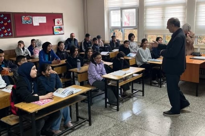 EDEP İzleme Kurulu üyesi ve ÖNDER Okul Aile Birliği Birim Başkanı Eyüphan Kaya Yenişehir Yüzbaşı Bahtiyarer İmam-Hatip ortaokulu öğrencilerine hitaben “veda hutbesi” temalı bir sunum yaptı.